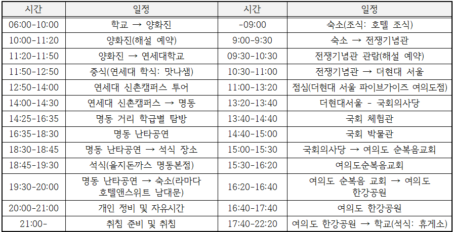 ※ 체험학습 일정은 기관 사정 및 기상 상황 등에 따라 변경될 수 있습니다.