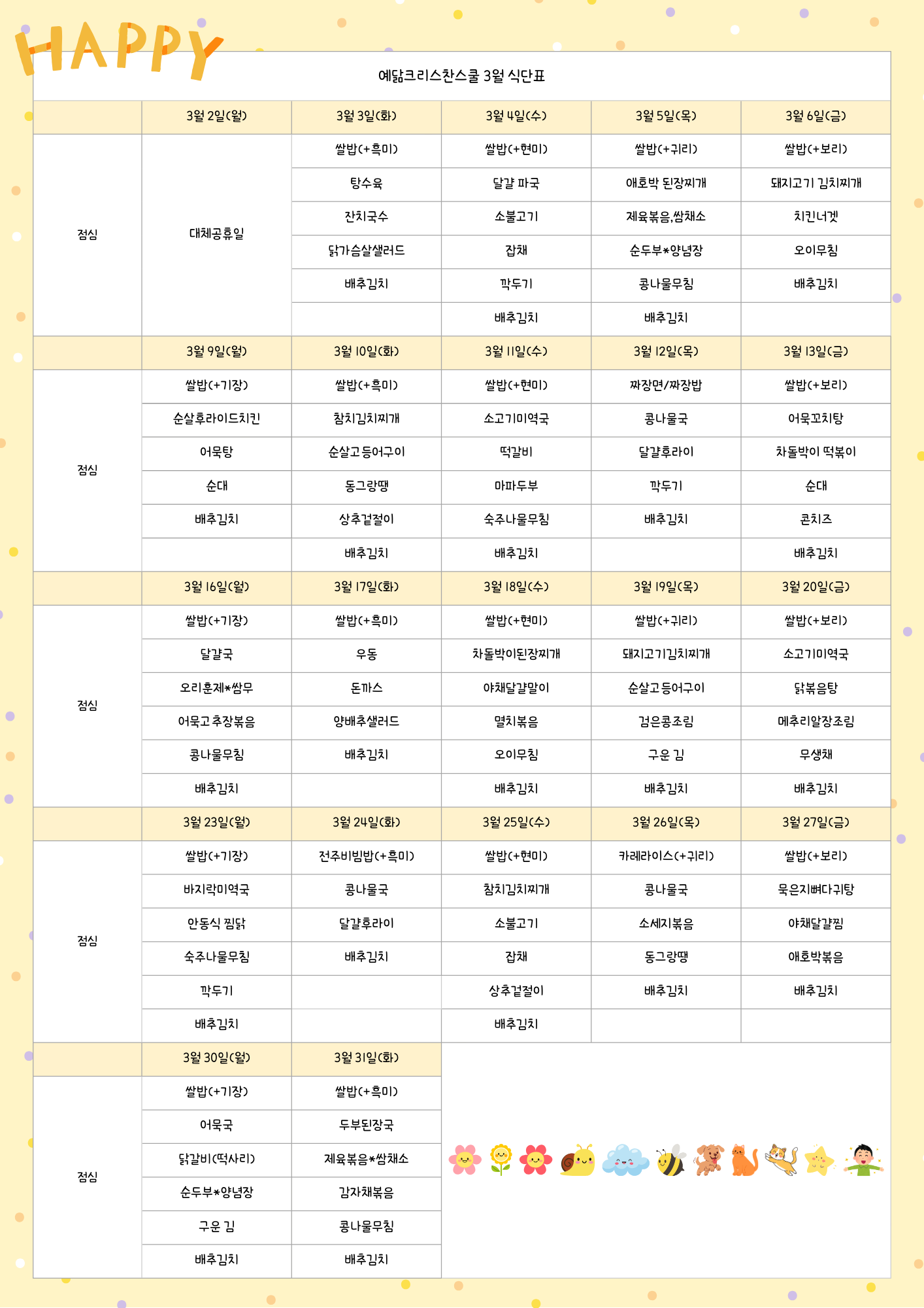 3월 식단 안내